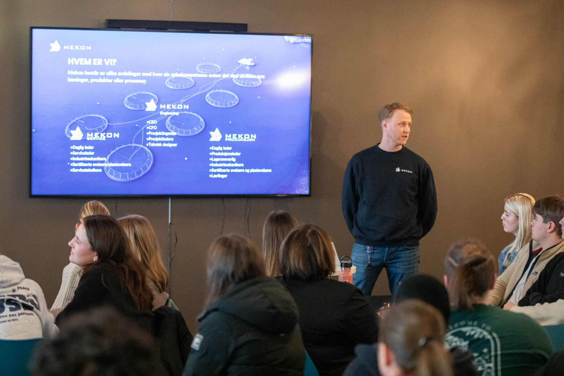 Nytt i 2026 er at elevene forbereder en kort presentasjon rettet mot næringslivet, der de deler sine tanker som er svært verdifull for oss: